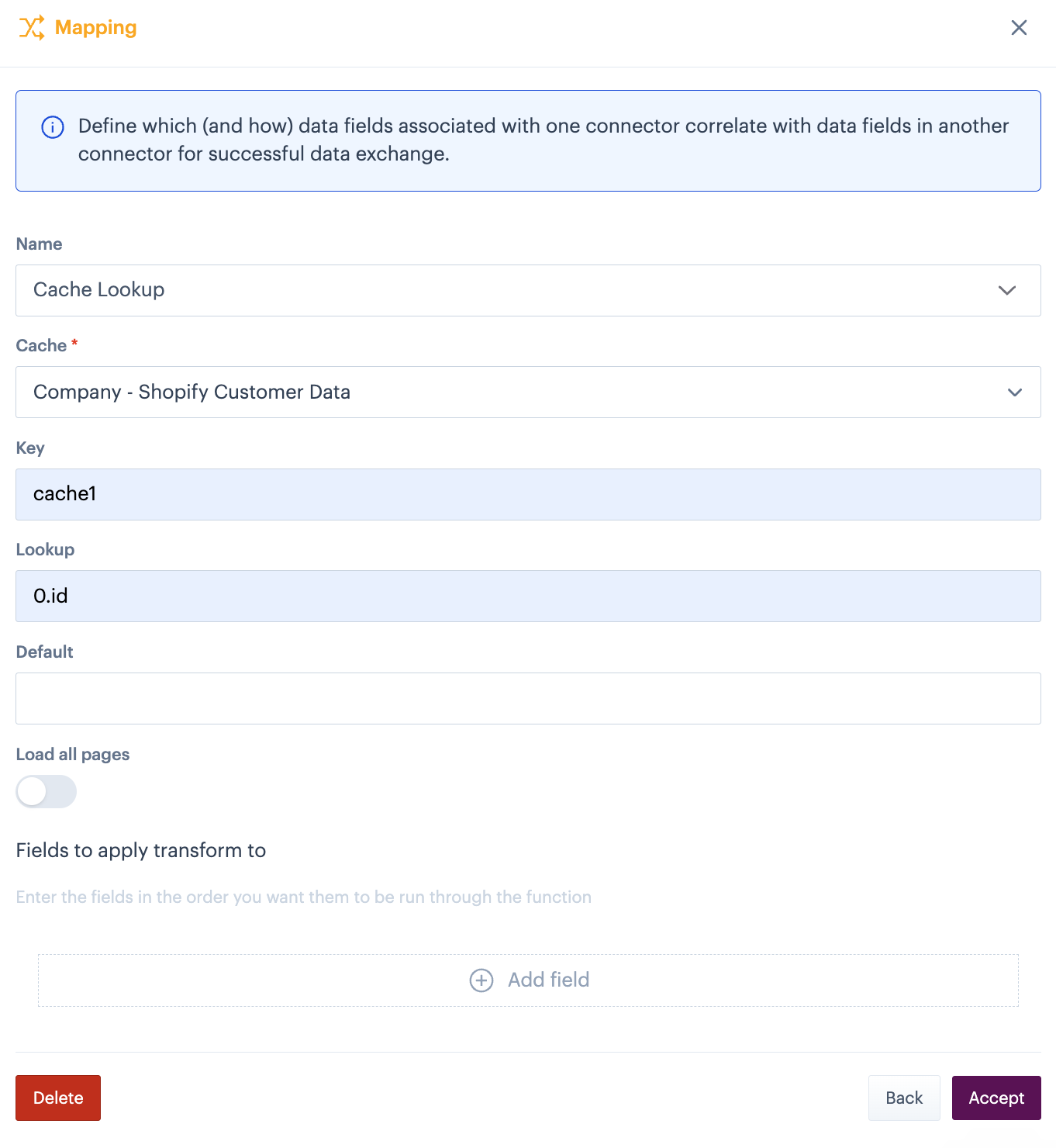 But that's not all! Cached data can also be referenced in the Map shape, with a Cache lookup transformation function. Here, you can look up values from specific data elements within a cache and map these to fields in a target system, merging multi payloads together.