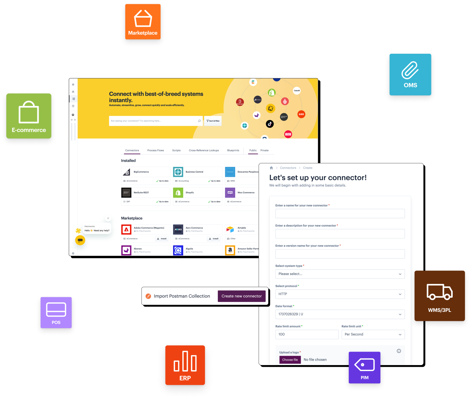 Custom integrations can be expensive to build and maintain and are often heavily dependent on large dev teams. With Patchworks, you can build, manage, and evolve integrations without the wait. Access to 100+ connectors for eCommerce, ERP, WMS, 3PL, POS, marketplaces, and much more.
