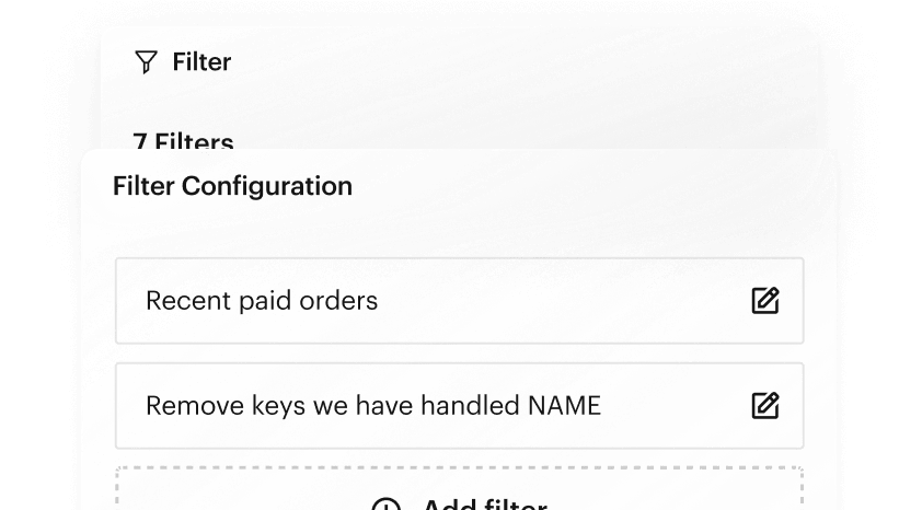 The filter shape refines data within a process flow. Placed after a connector, it fine-tunes the payload by applying additional filters to meet specific requirements. The filter settings allow selecting a field, operator, type, and value to define filters. Matched records can be kept or removed based on the "keep matching?" toggle, allowing precise data manipulation.