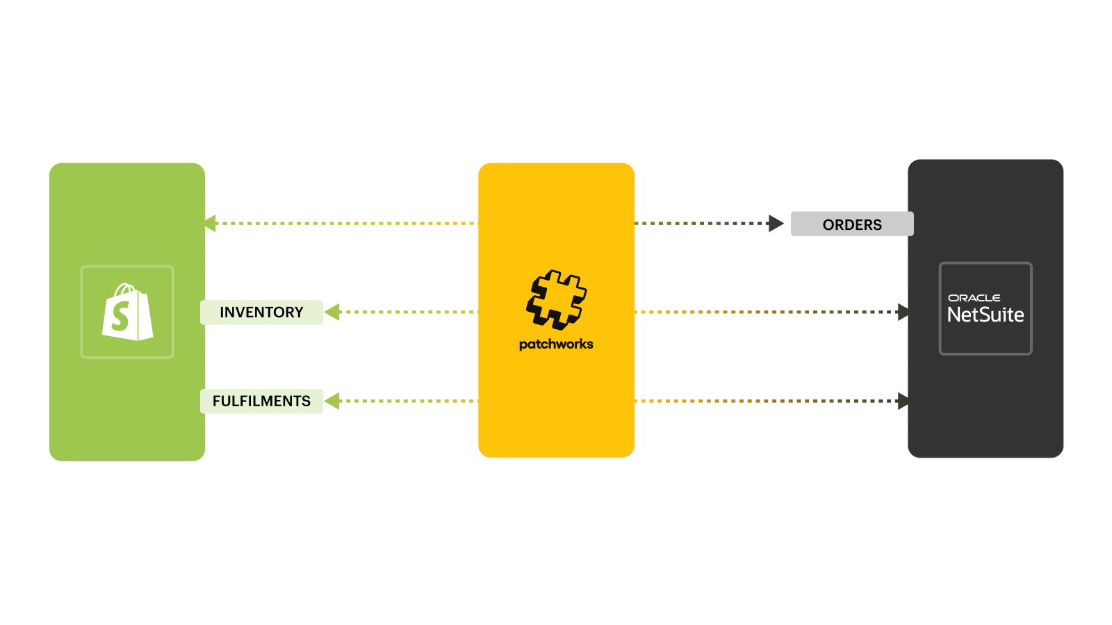 The Accelerator uses SuiteQL (NetSuite) and GraphQL (Shopify) to extract and compare data, with Patchworks handling data transformation, deduplication and syncing across systems.